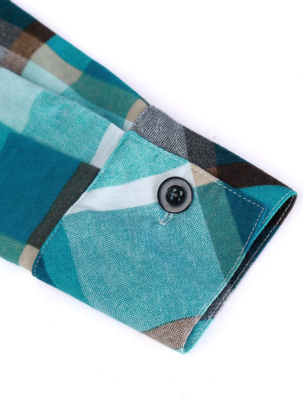 Roll Up Collared Short Sleeve Turquoise Single Pocket Women’s Button Down Plaid Shirt