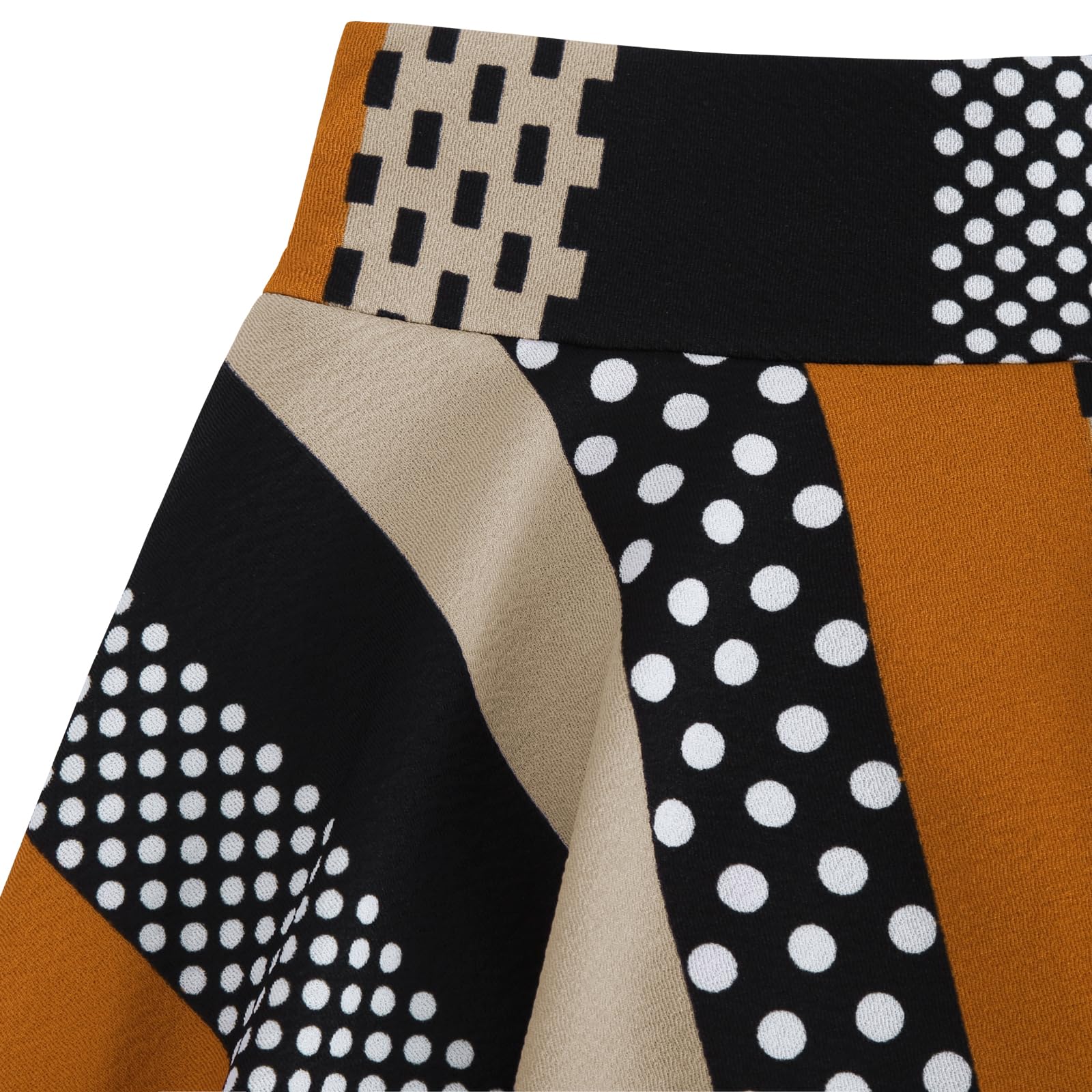 Flared Pleated Black Orange Stripe Women's Casual Stretchy Mini Skater Skirt with Shorts